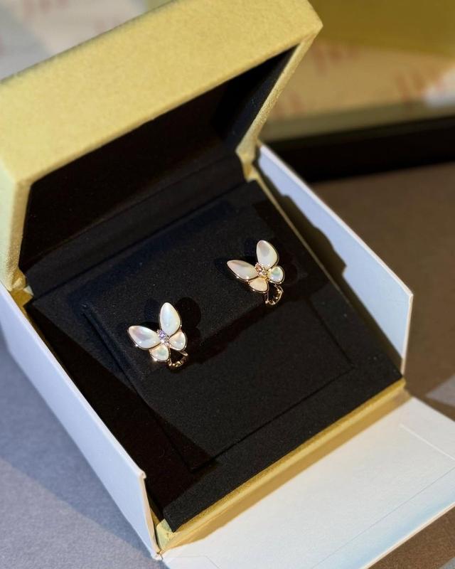 Серьги Van Cleef бабочки Материал 925 проба с ювелирной позолотой 750 Американская застежка Присутствуют серийный номер, проба, брендирование LUX качество!!! Полная брендовая упаковка! Наполнение: пакет, лента, сертификат, футляр (с защитной коробкой)