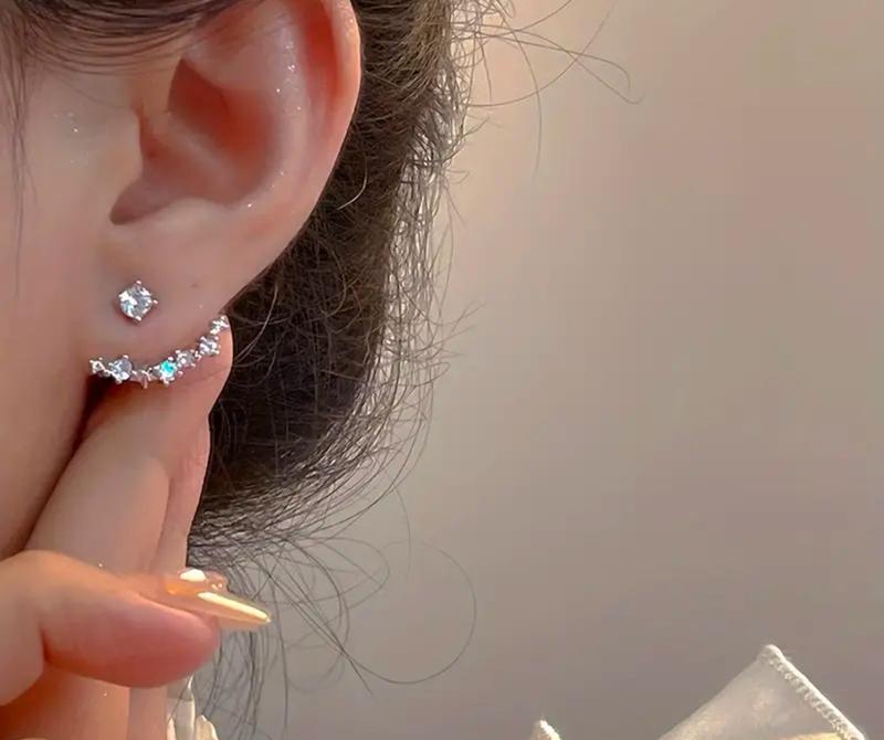 Серьги серебряного цвета выполнены в элегантном дизайне, состоящем из семи сияющих камней, гармонично расположенных для создания изысканного блеска. Камни эффектно переливаются при движении, подчёркивая утончённость и изящность украшения. Застёжка-гвоздик обеспечивает удобную и надёжную фиксацию, позволяя комфортно носить серьги в течение всего дня. Такой аксессуар станет прекрасным дополнением как к повседневному образу, так и к вечернему наряду, придавая образу нотку роскоши и женственности.