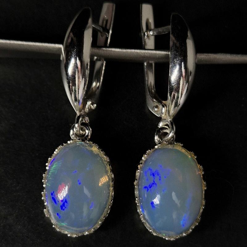 Серьги серебряные с природными эфиопскими опалами, ручная работа от мастеров украины