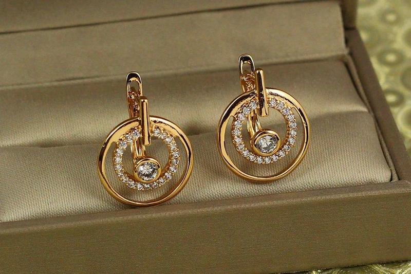 Серьги Xuping Jewelry Полярность золотистые длина 1,9 см ширина 1,6 см застежка английская вес 4,15 гр