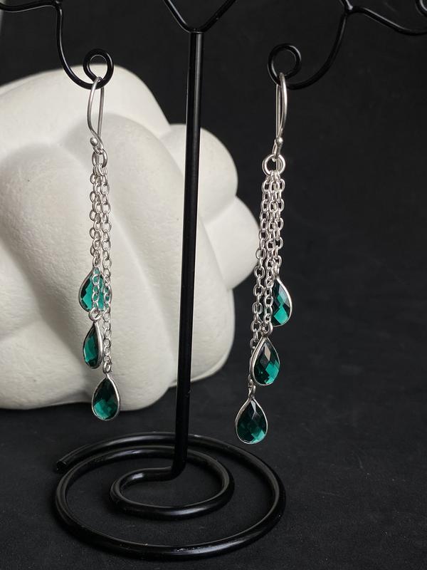 Сережки довгі підвіси смарагдовий кварц кульчики зі смарагдового кварцу в сріблі зелений к...