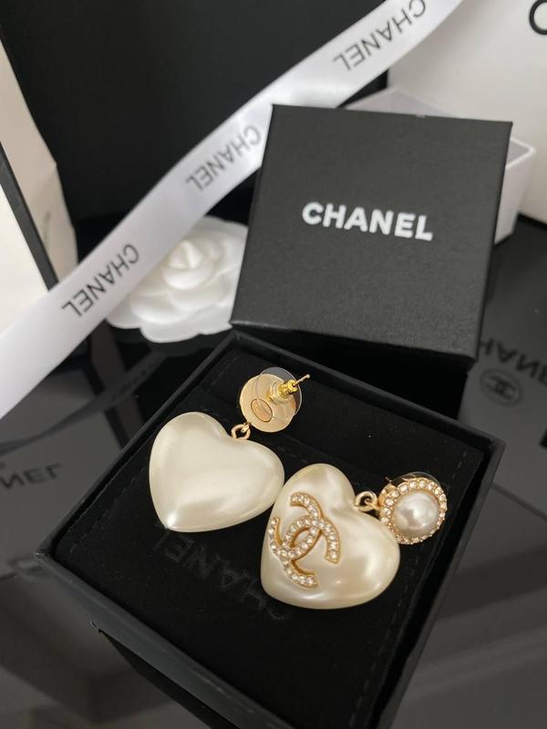 Шанель серьги крупные сердца / брендовые серьги с крупным жемчужным сердцем