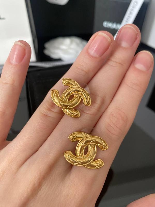 Шанель сережки-гвоздики в виде логотипа / позолота 18 к