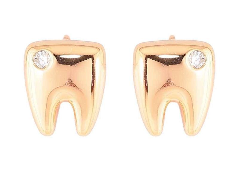 Сережки позолота 18k пусети «зуби з цирконієм» (258874) тм xuping