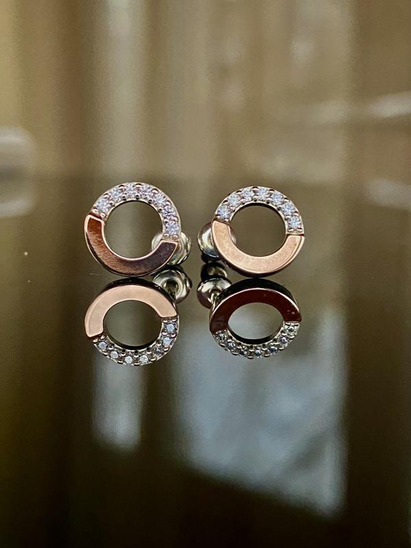 Нові стильнi стібні сережки пусети з золотими пластинами. Сережки можуть бути на подарунок. Срібло 925 проби родiйоване та золото 375 проби. Камінчики шикарно виблискують, фото всiєї краси на жаль не передає. В сережках надiйна винтова застiбка. Більш детальна інформація про вагу та розмір ювелірного виробу міститься на самих фото. Фото зняті при денному освітленні, без спалаху та сторонніх програм. Маю чимало цікавих прикрас). Всі мої речі та аксесуари якісні, покупкою залишитесь задоволені) За необхідності зроблю Вам додаткові фото та з радістю відповім на всі Ваші запитання)
