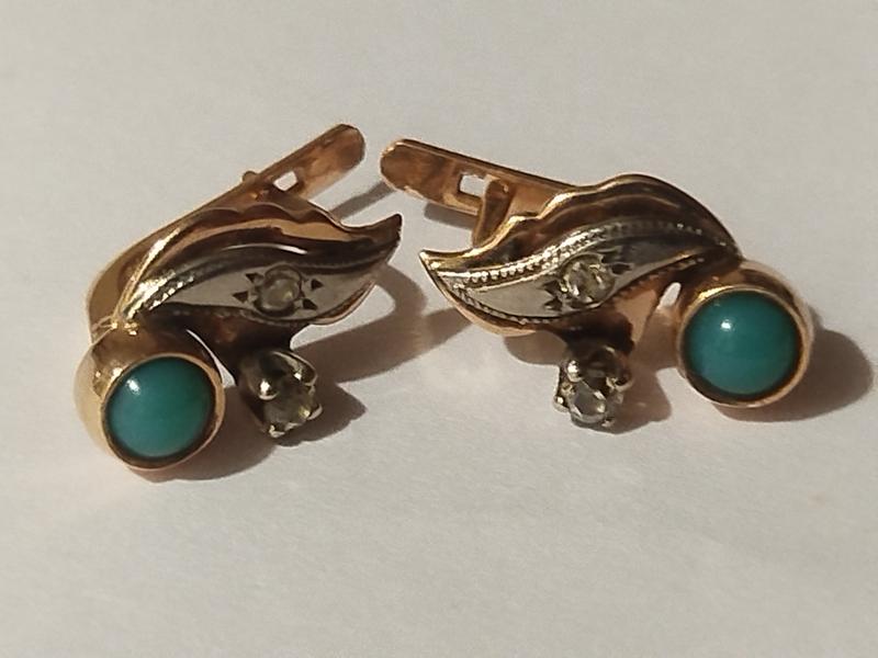 Редкая модель! Серьги ссср из золота 583 пробы со звездой с хризопразом ,вес 4,7 грамм
