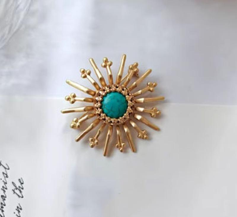 Брошь бирюза и золото бижутерия имит +-4,1 см