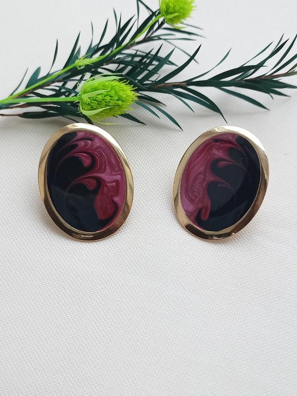 Винтажные серьги, овальные, черная, вишневая эмаль, модные, винтаж