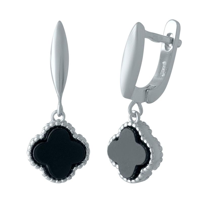 Родированые серебряные серьги 925 пробы с натуральным ониксом. Родированные украшения дольше сохраняют свое первоначальное состояние, а именно цвет и блеск металла. Все ювелирные изделия представленные на нашем сайте прошли внутренний контроль качества, а также контроль государственной пробирной службой Украины, на всех изделиях стоит соответствующая проба. К каждому ювелирному украшению прилагаются бирка с указанием всех параметров.*Цвета изделий на сайте могут незначительно отличаться от реальных из-за особенностей цветопередачи экрана