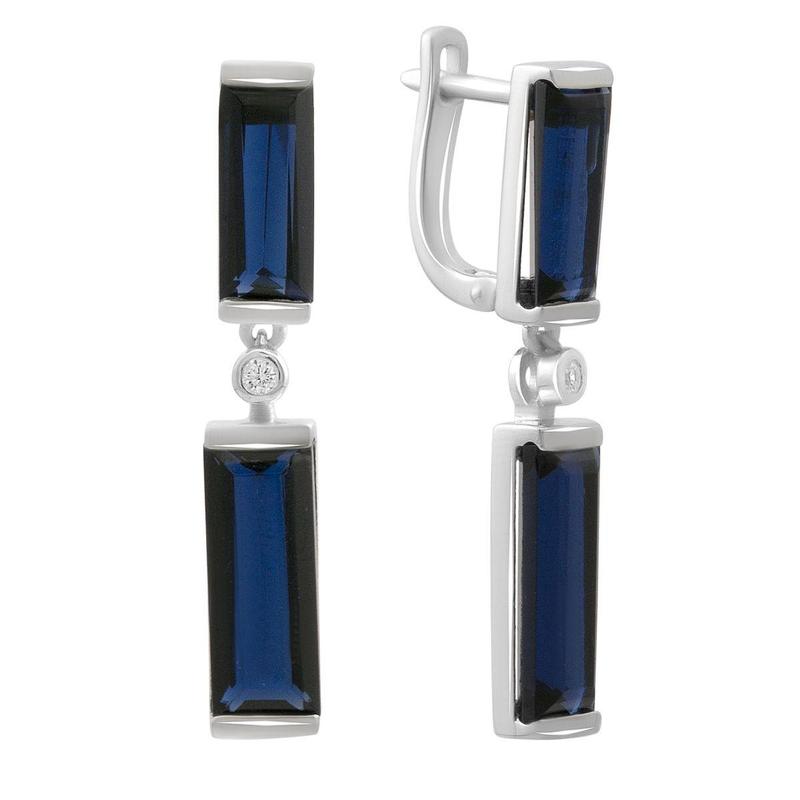 Родированые серебряные серьги 925 пробы с сапфиром nano 9.608ct, фианитами. Родированные украшения дольше сохраняют свое первоначальное состояние, а именно цвет и блеск металла. Все ювелирные изделия представленные на нашем сайте прошли внутренний контроль качества, а также контроль государственной пробирной службой Украины, на всех изделиях стоит соответствующая проба. К каждому ювелирному украшению прилагаются бирка с указанием всех параметров.*Цвета изделий на сайте могут незначительно отличаться от реальных из-за особенностей цветопередачи экрана