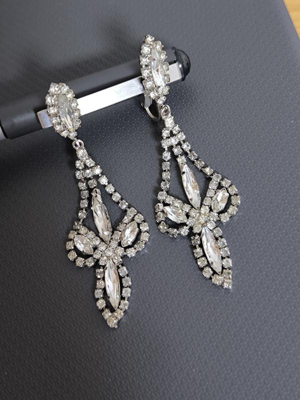 Очень эффектные винтажные клипсы Отлично сияют Замеры на фото Достаточно легкие для своего размера Состояние отличное, без дефектов, минимальные признаки времени Без маркировки