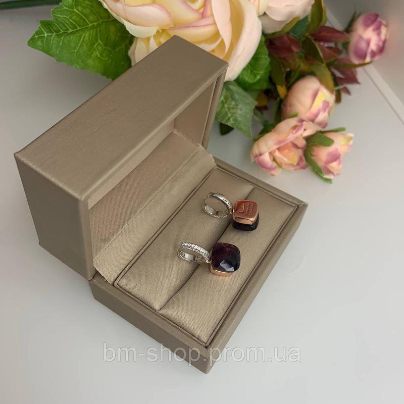 Серьги помеллато посеребрённые с квадратным камнем коричневого цвета
