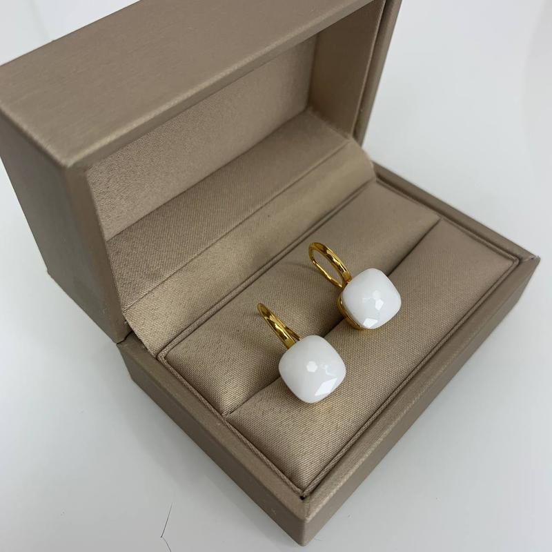 Серьги помеллато позолота с квадратным камнем белого цвета