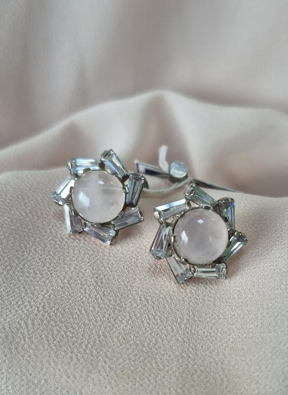Срібні сережки 925 проби у вигляді квіток із вставкою рожевого кварцу та білих цирконів огранка багет, вага виробу 8,67 грам.