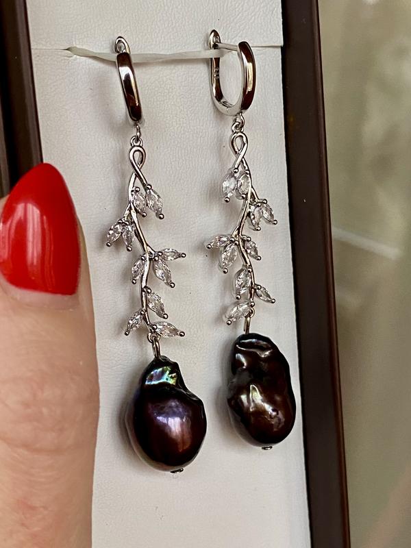 Нові казковi довгі срібні сережки з цар-перлами, великими перлами Барокко. Сережки в одному eкземплярi. Срібло 925 проби вкрите родiэм 999 проби, виглядаэ й носиться як бiле золото. Сережки масивні. Нижня частина сережки рухома. Надiйна англійська застібка. УВАГА, торгу й знижок на цю пару сережок немаэ. Фотографії знято на звичайний телефон, без спалаху та сторонніх програм. Всі мої речі та аксесуари якісні, покупкою залишитесь задоволені) За необхідності зроблю Вам додаткові фото та з радістю відповім на Ваші запитання)