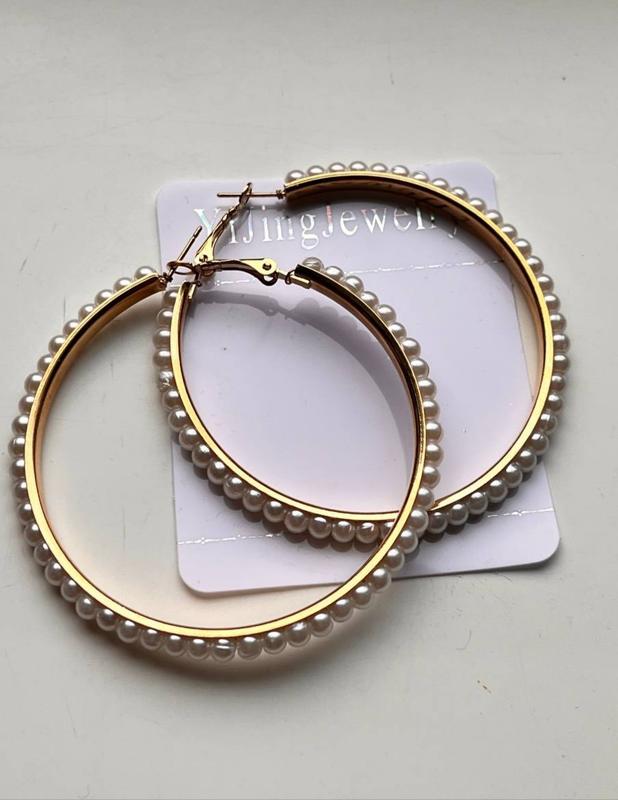 Красивые серьги кольца с имитацией жемчуга Размер ок 6см Новые Ювелирный сплав
