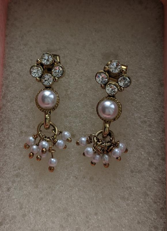 в золотом тоне металл со вставками из прозрачных кртсталло и искусственного жемчуга, длина 2,5 см. полная предоплата