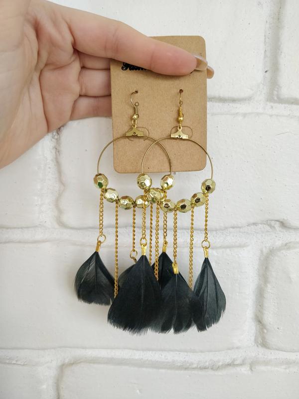 Серьги кольца с перьями