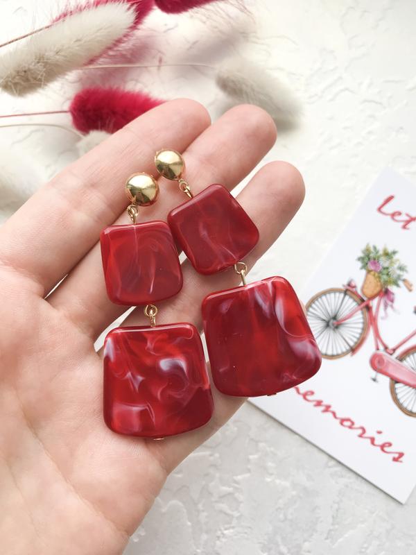 Красные стильные серьги