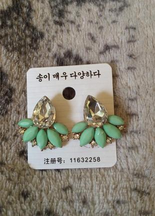 Серьги- гвоздики. Мятного цвета
