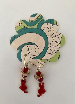 Серьги красные, метал (под золото). Могут быть подарком при покупке какого-либо моего товара.
