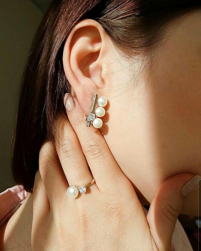 🛍 сережки срібло з золотом перли натуральні