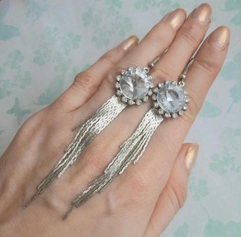 Серьги длин подвески страз камушки кульчики бижутер цепоч праздн украшен нарядн стильные с...