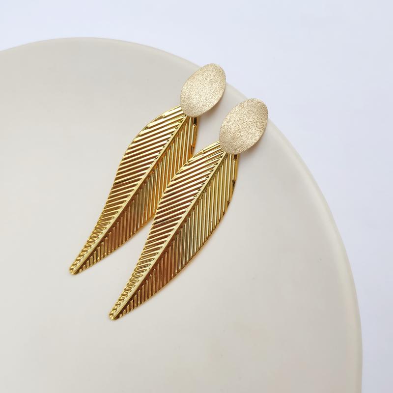 Золотистые серьги листья на гвоздиках, листочки, золотые нарядные вечерние
