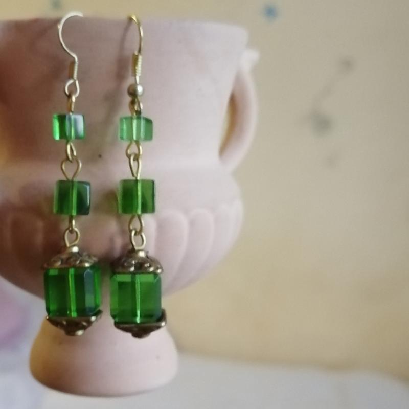 Хенд-мейд, серёжки, камешки зелёные, круто смотрятся на солнце