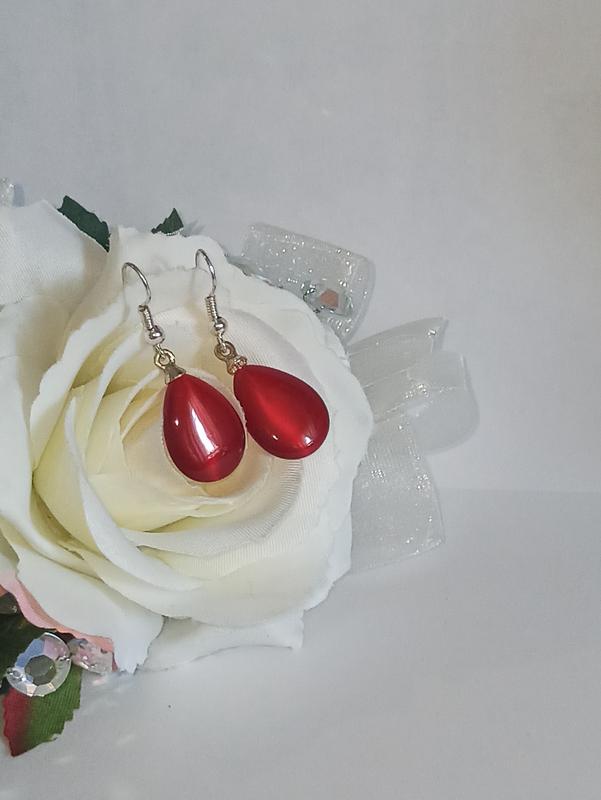 Серьги капли,цвет алый,стекло.