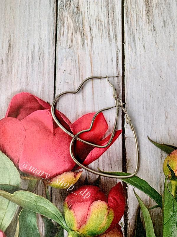 В наличии новые серьги сердечки. В серебряном цвете. Цинковый сплав.
