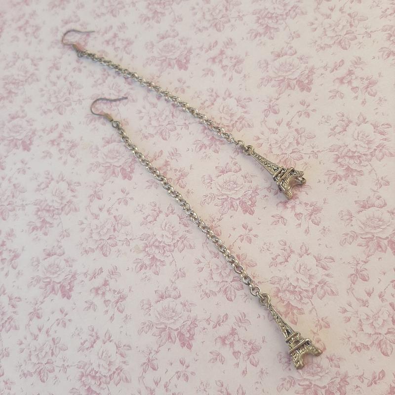 Длинные серьги с подвесками эйфелев башня сереб цепочк ручн раб лаконичн тренд