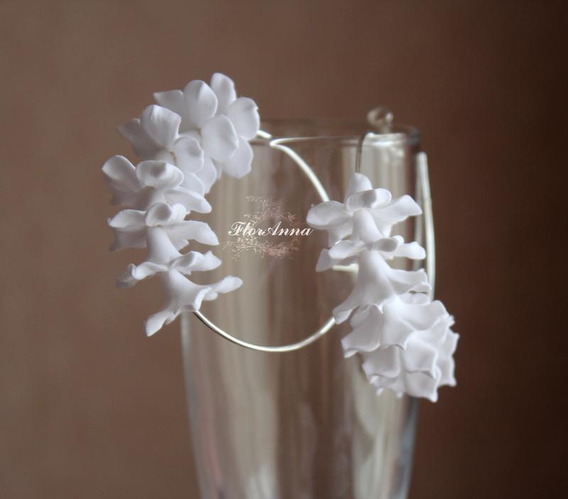 Белые серьги кольца "стефанотисы". свадебные серьги цветы