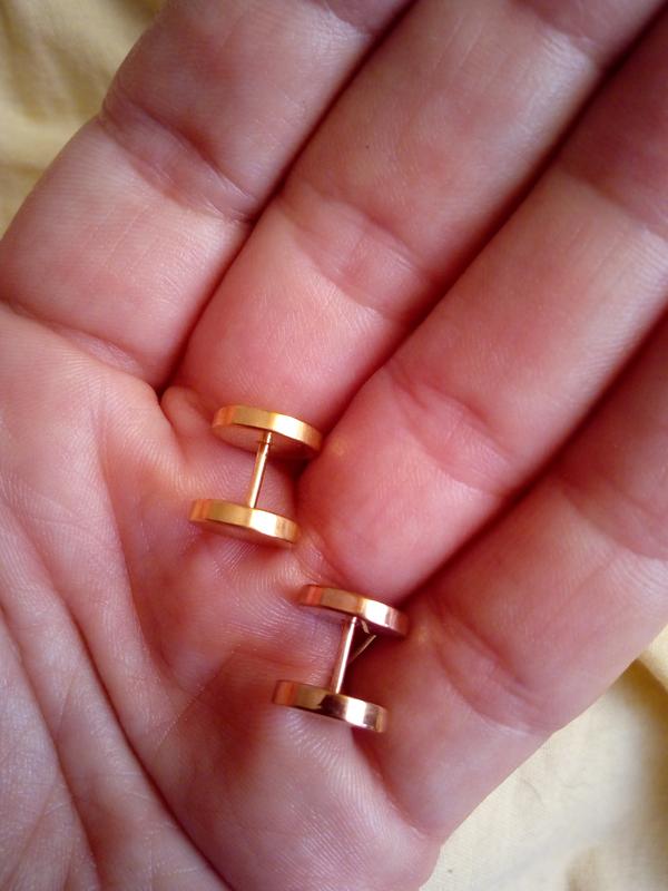 сережки двосторонні ( штанги ), закручуються на різьбу, імітація золота, ціна за 1 шт., пара - 100 грн.