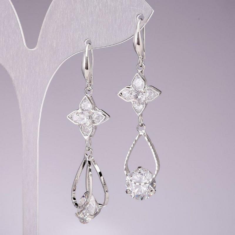 [5,5см] Серьги застежка -петля, белые кристаллы