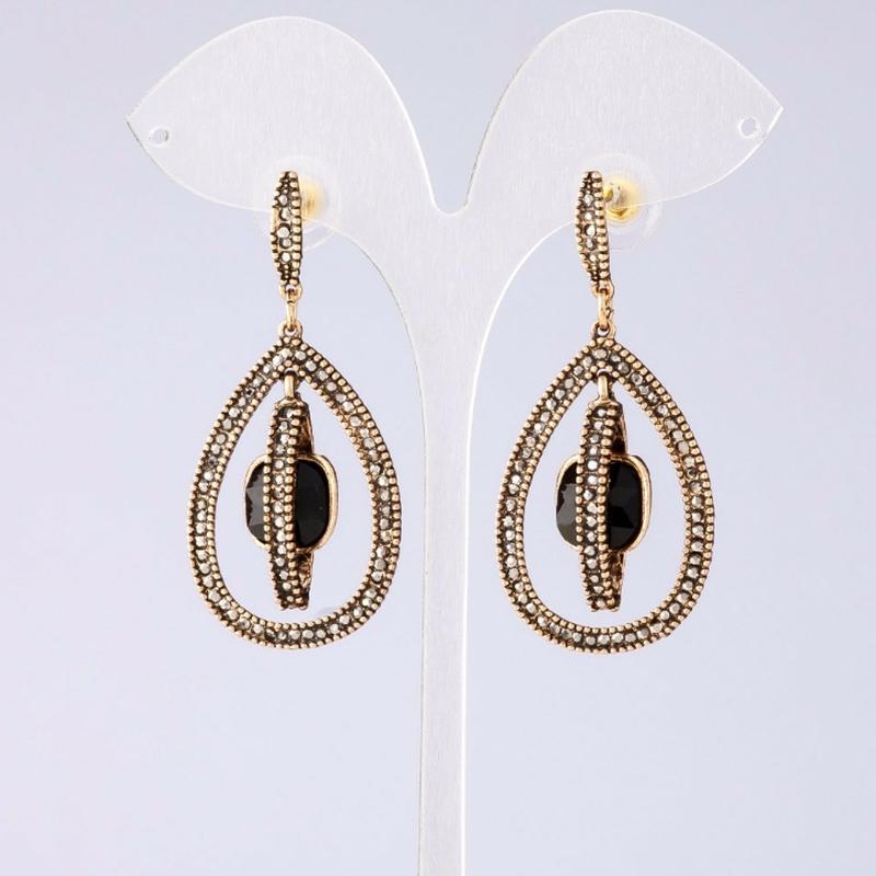 Серьги вечерние длинные L- 5,5см, чёрные кристаллы