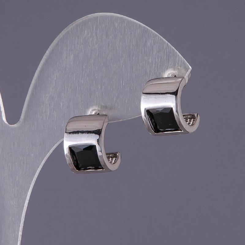 Серьги с черными кристаллами 13х9мм