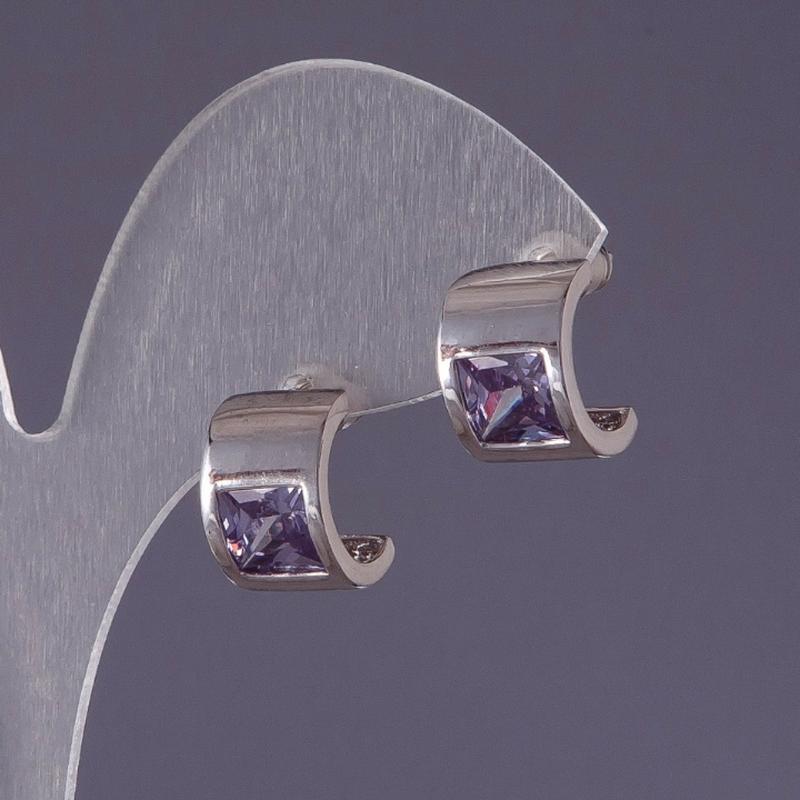 Серьги со светло-сиреневыми кристаллами 13х9мм