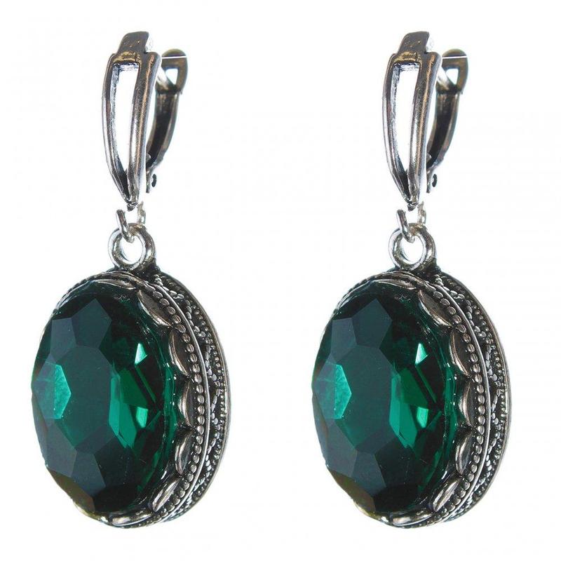 Серьги с зелеными кристаллами, овальный камень 2*1,6см L-4см