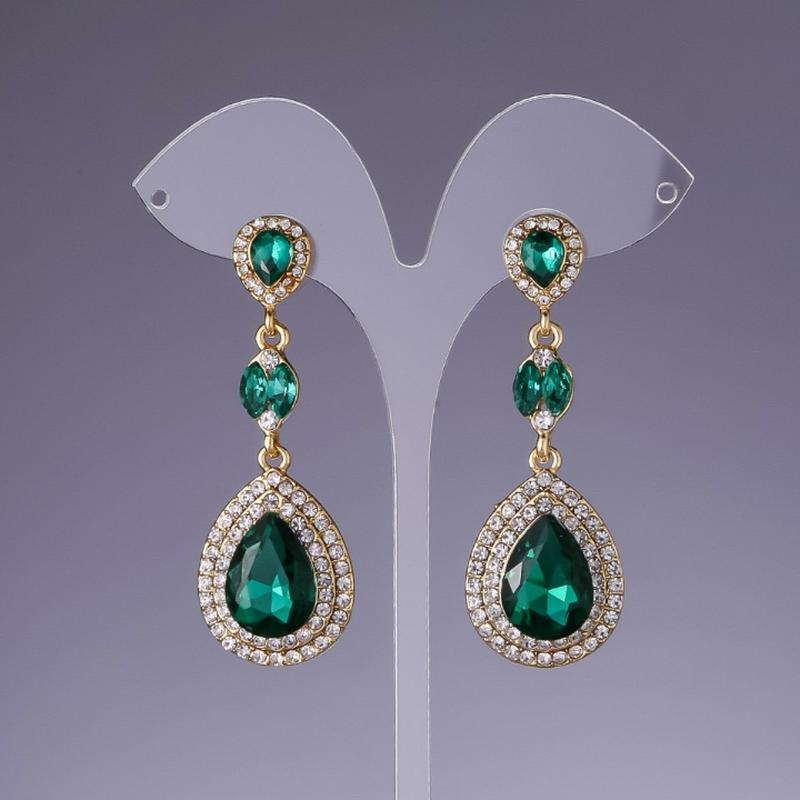 Серьги с зелеными кристаллами L-6см