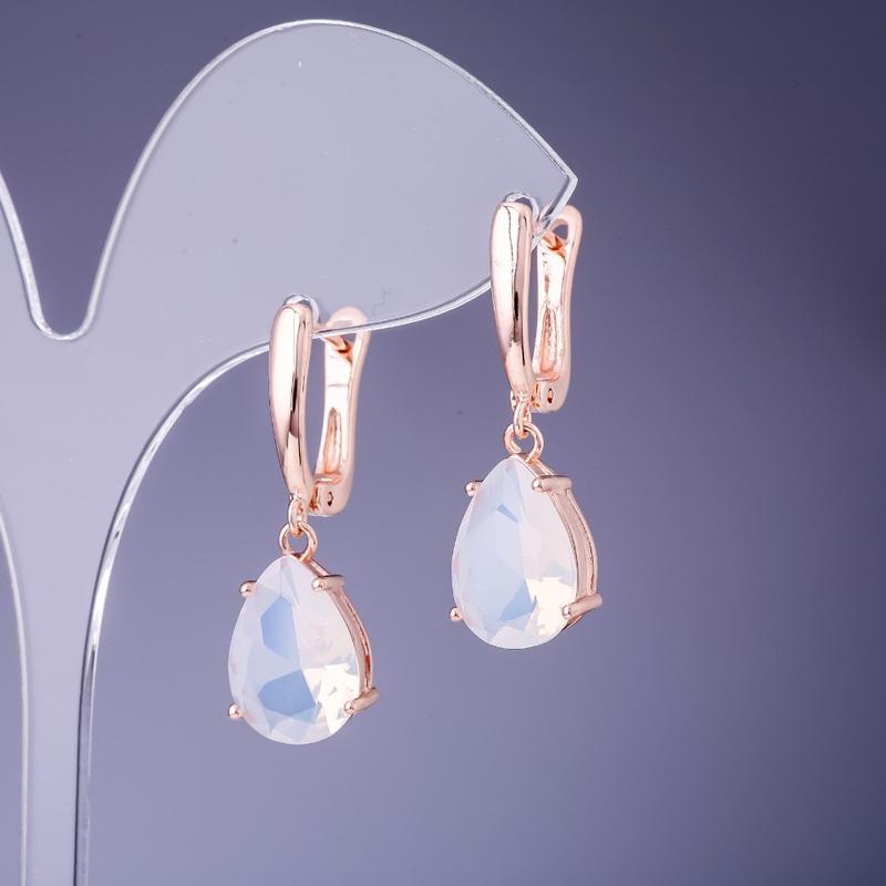 Серьги капли с белыми кристаллами 14х11х32мм