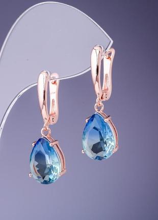 Серьги капли с светло синими кристаллами 14х11х32мм