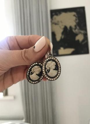 Серьги камея, девушка в профиль, силуэт девушки