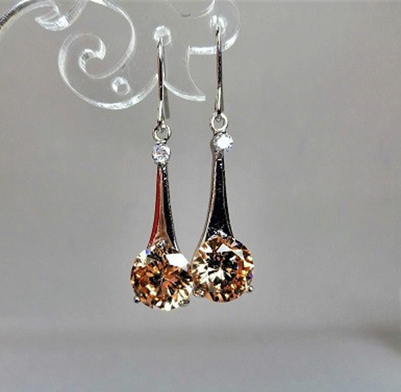 Серьги подвески с желтым кристаллом