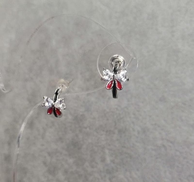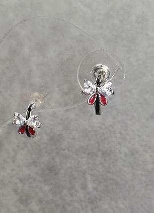 Серьги с белыми кристаллами и красными 10х7мм
