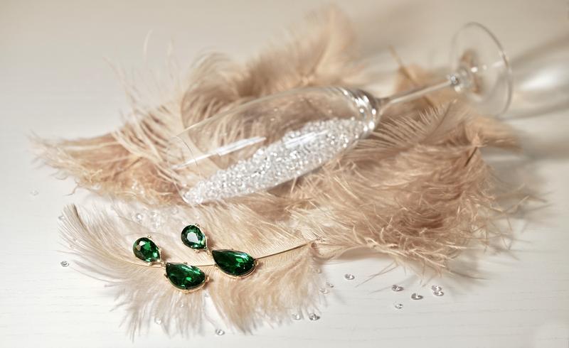Изумрудные серьги-капельки в золотом обрамлении. Длина: 5 см Застёжка: гвоздики