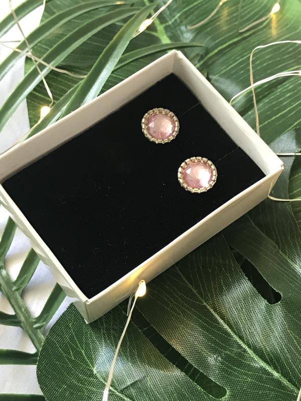 Серьги-гвоздики с розовыми камешками🌸