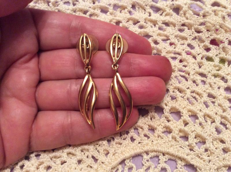 Винтажные серьги в золотом тоне.Американская коллекция 80е годы.Длина 5см