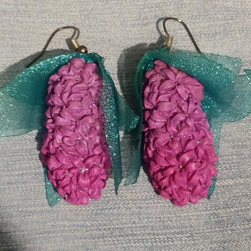 Серьги "гиацинты", полимерная глина. Ручная работа.