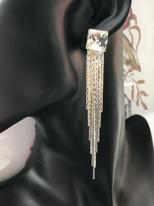 Серьги с кристаллами, медицинский сплав, покрыты родием, в процессе носки темнеть не будут. Отправка в день заказа. Возможен наложенный платёж. Длина 10см